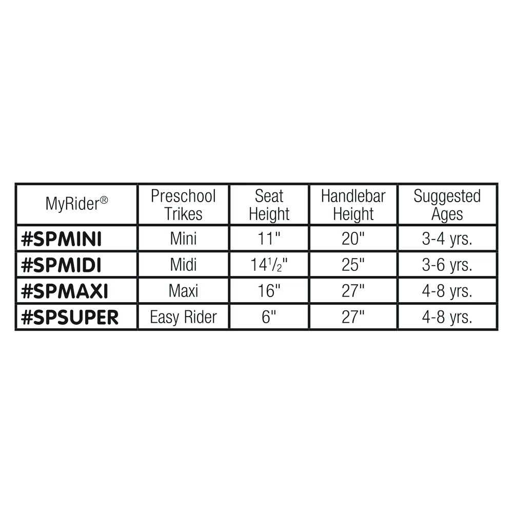 The biggest innovation in tricycles since the wheel is here thanks to Angeles®, the most trusted name in trikes. The revolutionary new Vario Seat® is a versatile riding solution that gives each child a better fit. Found exclusively on the new MyRider® trikes by Angeles® the sleek Vario Seat® features a long shape that allows children of various sizes to ride in comfort as well as a grooved handle that makes it easy for adults to carry. With a sporty, yellow powder-coated steel frame and solid rubber tires, the durable, modern MyRider® trikes will stand the test of time as child after child can call it their own. US Patent 8276987.