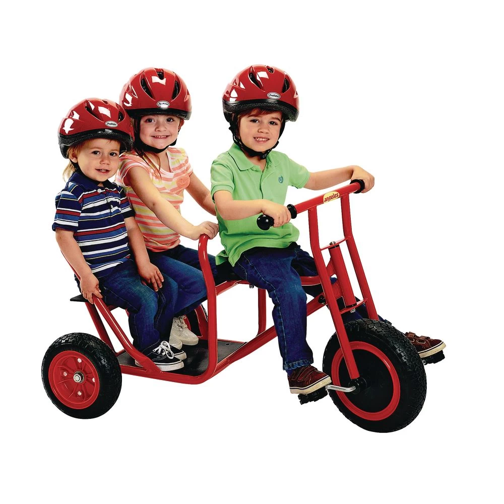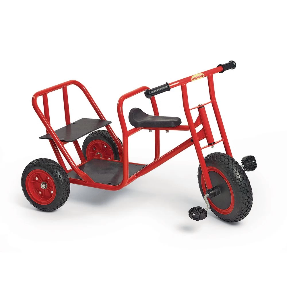 Taxi! Taxi! This sturdy trike allows 1-2 passengers to ride in comfort in the rear seat which features back support, grab bars and a non-skid footrest.