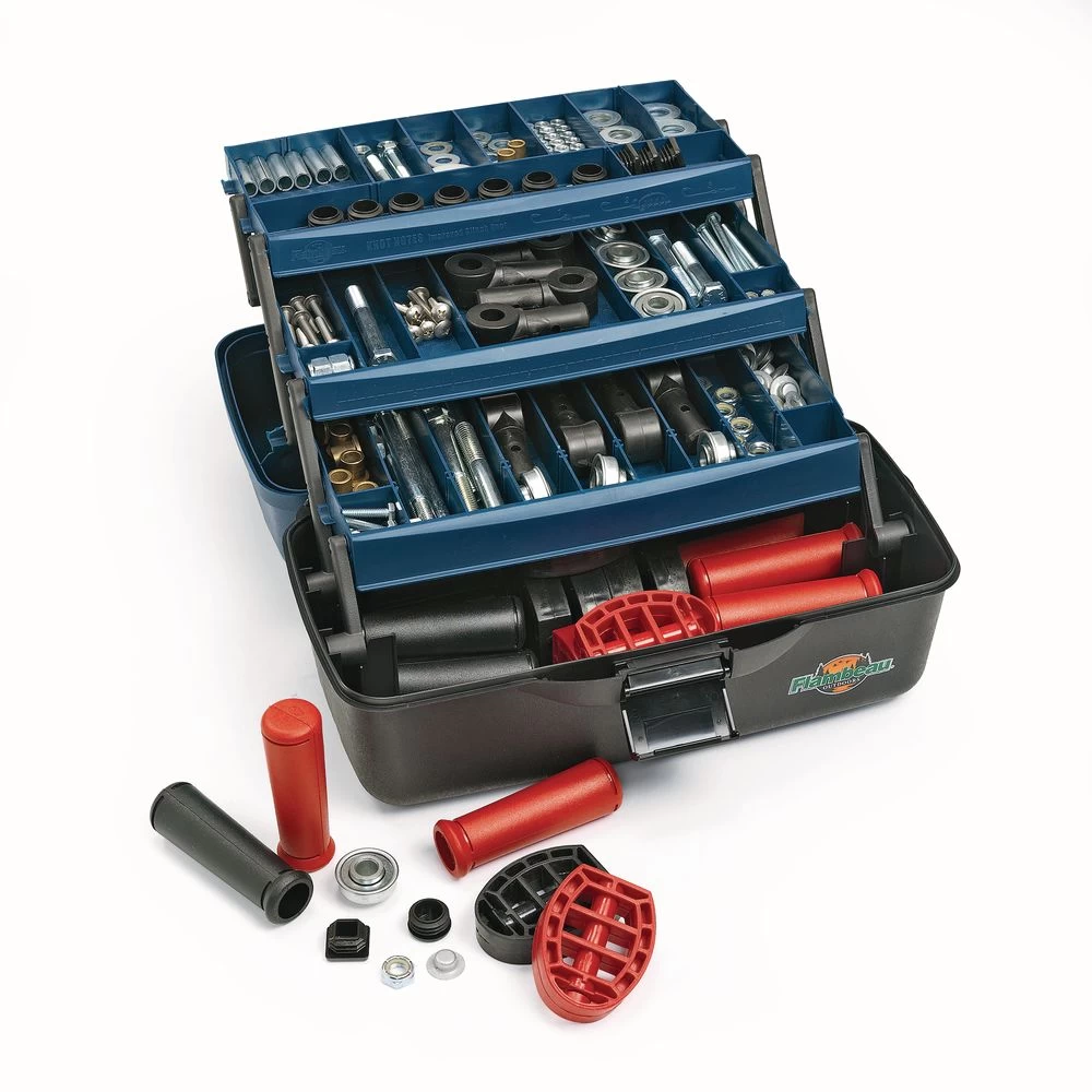 Contains 211 pieces with 37 different spare trike parts. Includes sturdy, expandable storage box.