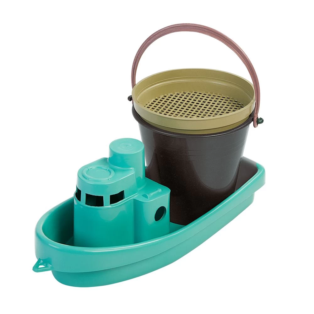 The Boat and Sand Set from dantoy’s marine world, Blue Marine Toys, includes several elements that provide ample opportunity for sensory play and exploring sand and water in the great outdoors.