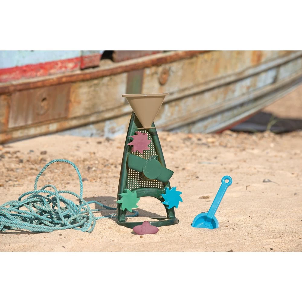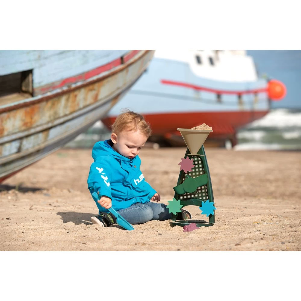 The Sand and Water Mill Set from Blue Marine Toys, like all other toys from the range, is made from recycled plastic derived from marine gear such as nets, trawls and ropes. At the factory in Hobro, these residual materials are transformed into toys, as using the recycled gear is a preventive action against fishing and marine gear ending in the oceans. The Blue Marine range encourages you to play with sand and water in the great outdoors – in the very nature that we must care for and protect. With Blue Marine Toys, dantoy is making a sustainable, preventative move towards protecting nature.