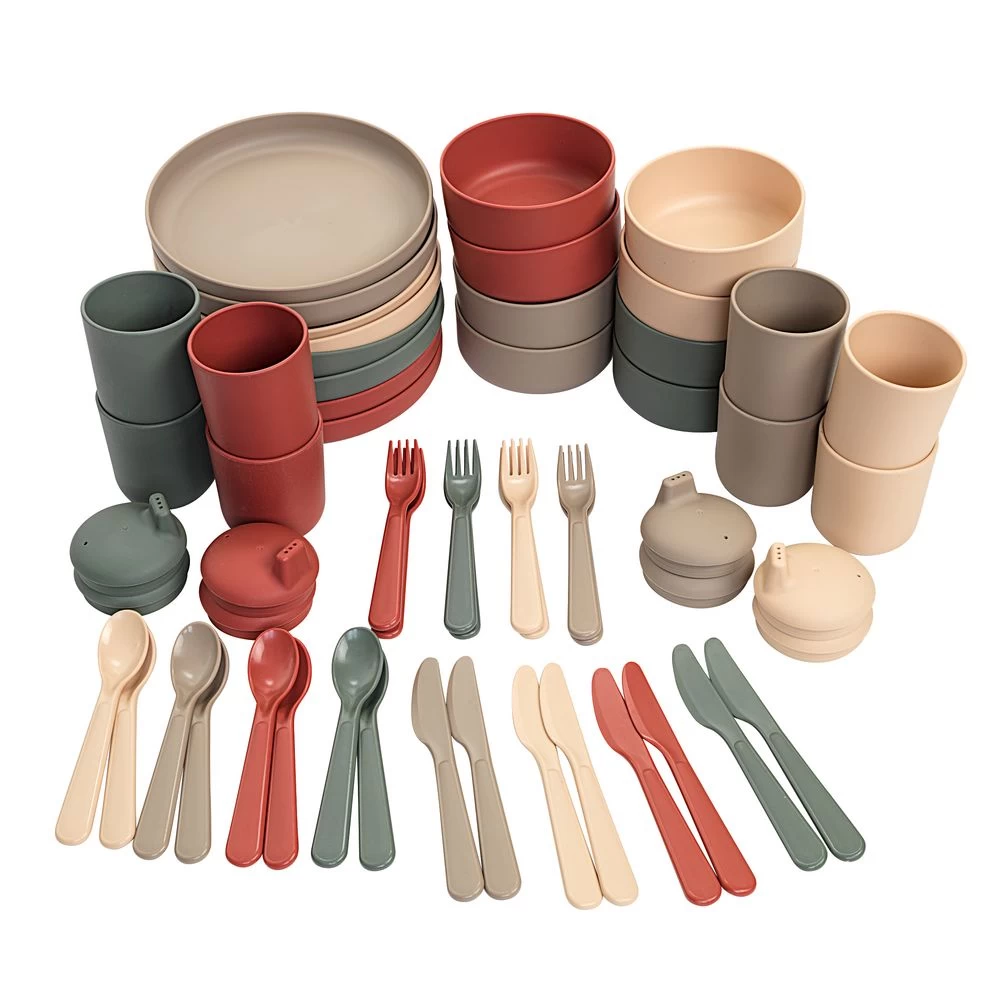 The dinner set has a long lifespan, as it can be used from the child’s first meal and adapted from there, as the child’s skills and motor skills develop. This can be done by removing the lid on the sippy cup and introducing the knife.