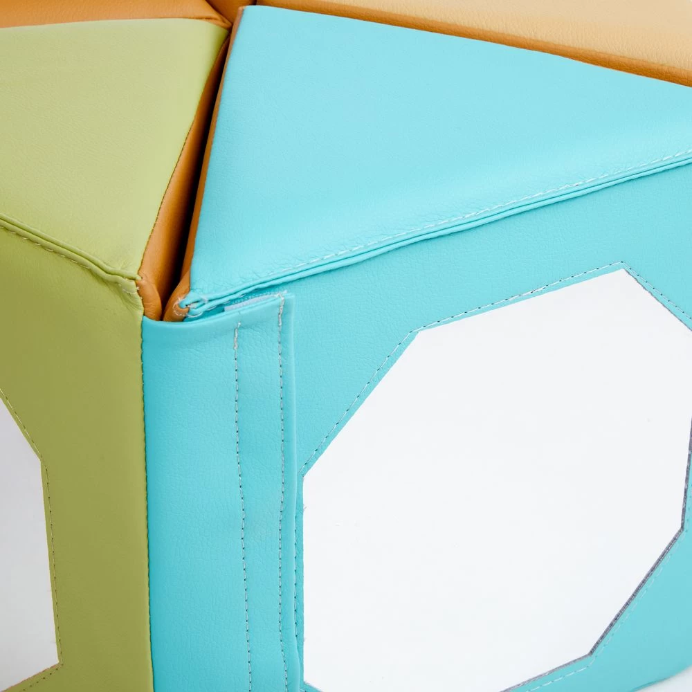 Why settle for 1 mirror when you can give babies 5? The Multi-Image Mirror Pentagon engages early-crawlers during tummy time in a semi-circle of shatter-resistant, acrylic mirrors. Mirrors help babies develop self-recognition, body awareness and spatial awareness in a safe environment. Mirrors also foster curiosity and help babies develop better eyesight as they track movement. Constructed using durable foam and covered in soft vegan leather.