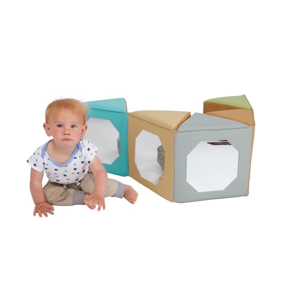 - 5 SAFE MIRRORS: 5 shatter-resistant, acrylic mirrors help babies develop self-recognition, body awareness and spatial awareness in a safe environment. Mirrors also foster curiosity and help babies develop better eyesight as they track movement.