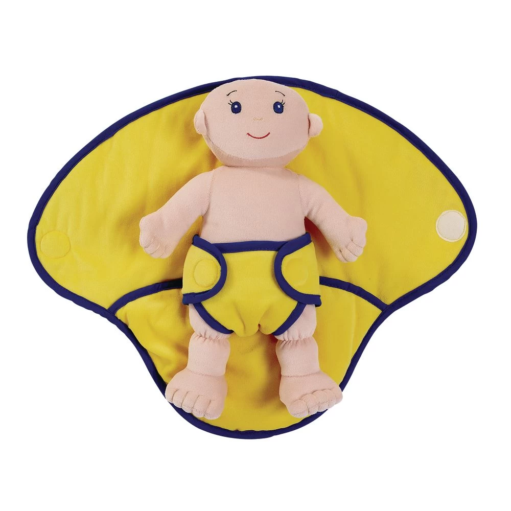- Complete with removable swaddle blankets and matching diapers