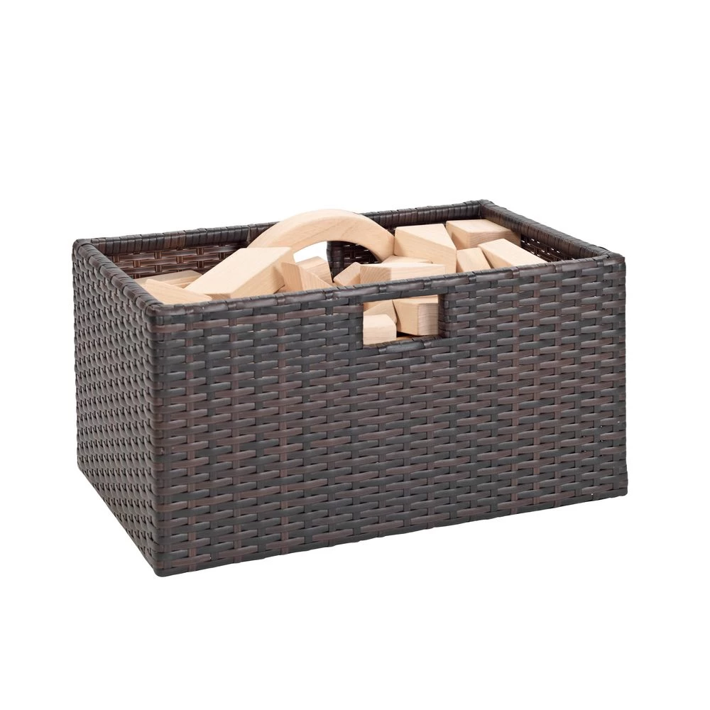 - COMPANION PRODUCTS: Create a tidy and organized space with three different available companion Wicker Storage Shelving units. All pieces have the same durable, lightweight frames and attractive resin wicker covering. Ideal storage solution for nature-inspired classrooms, outdoor learning areas, even decks and patios. Store garden supplies, family yard toys, outdoor accessories, and more.