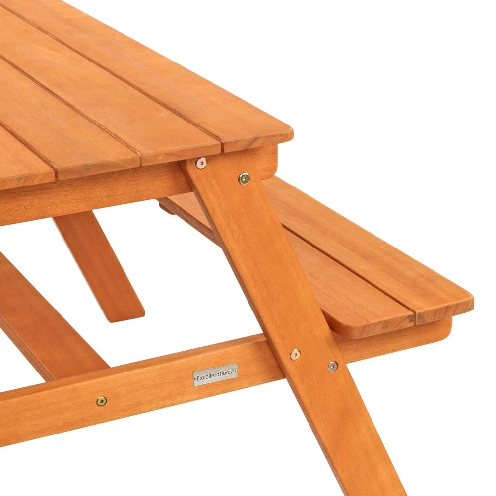 - DISPLAY: Unlike other children’s picnic tables, ours is made of eucalyptus wood and not plastic. Will look great in your front or backyard with its smooth finish. Made to look like an adult picnic table but for kids!