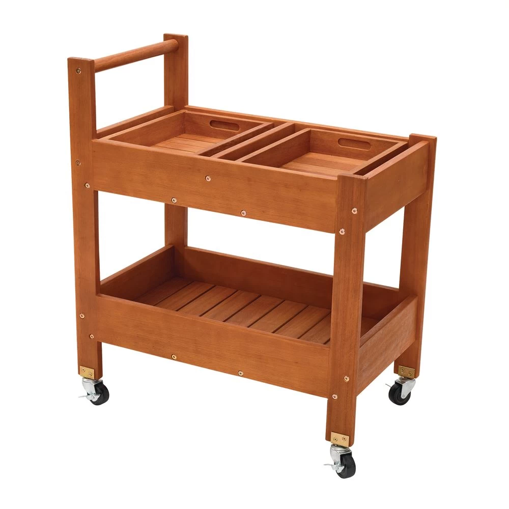 Easily expand your learning space with the outdoor storage rolling cart. Made from durable eucalyptus wood that doesn’t need to be treated and naturally weathers over time, the cart can easily be wheeled indoors and outdoors with the craft supplies, active play items and much more! Assembly required. For children ages 3 years and older.