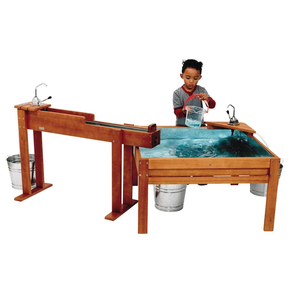 - APPLICATION: With two pumps and the large water table, there’s enough room for many children to play, learn, and explore. Children can control the water circulation with the pumps. Teach simple science lessons and properties about water.