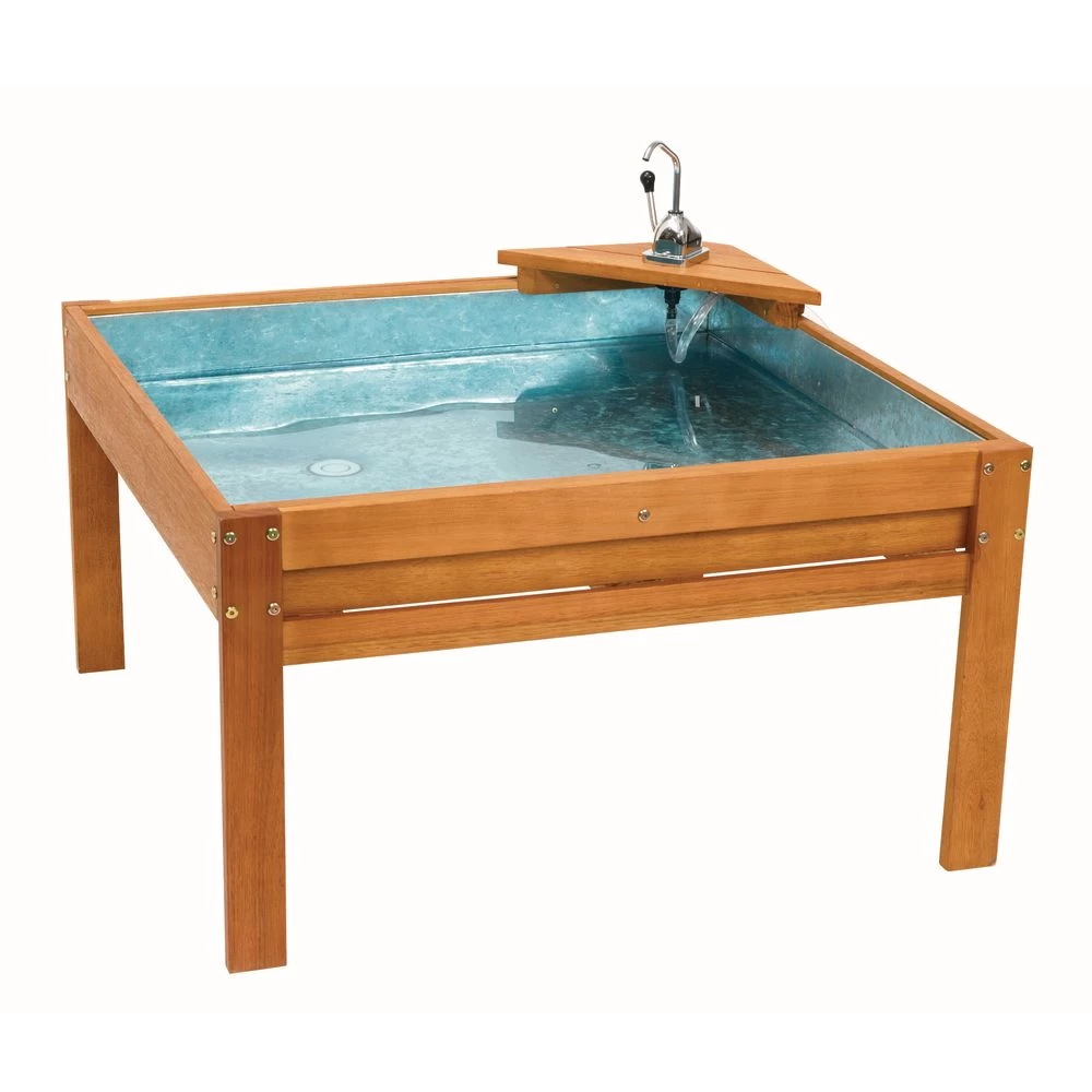 - EASY TO CLEAN: Made of sturdy eucalyptus, outdoor water trough and table can be cleaned with water and light detergent. Easily spray, wipe, and your kids are ready to play again.