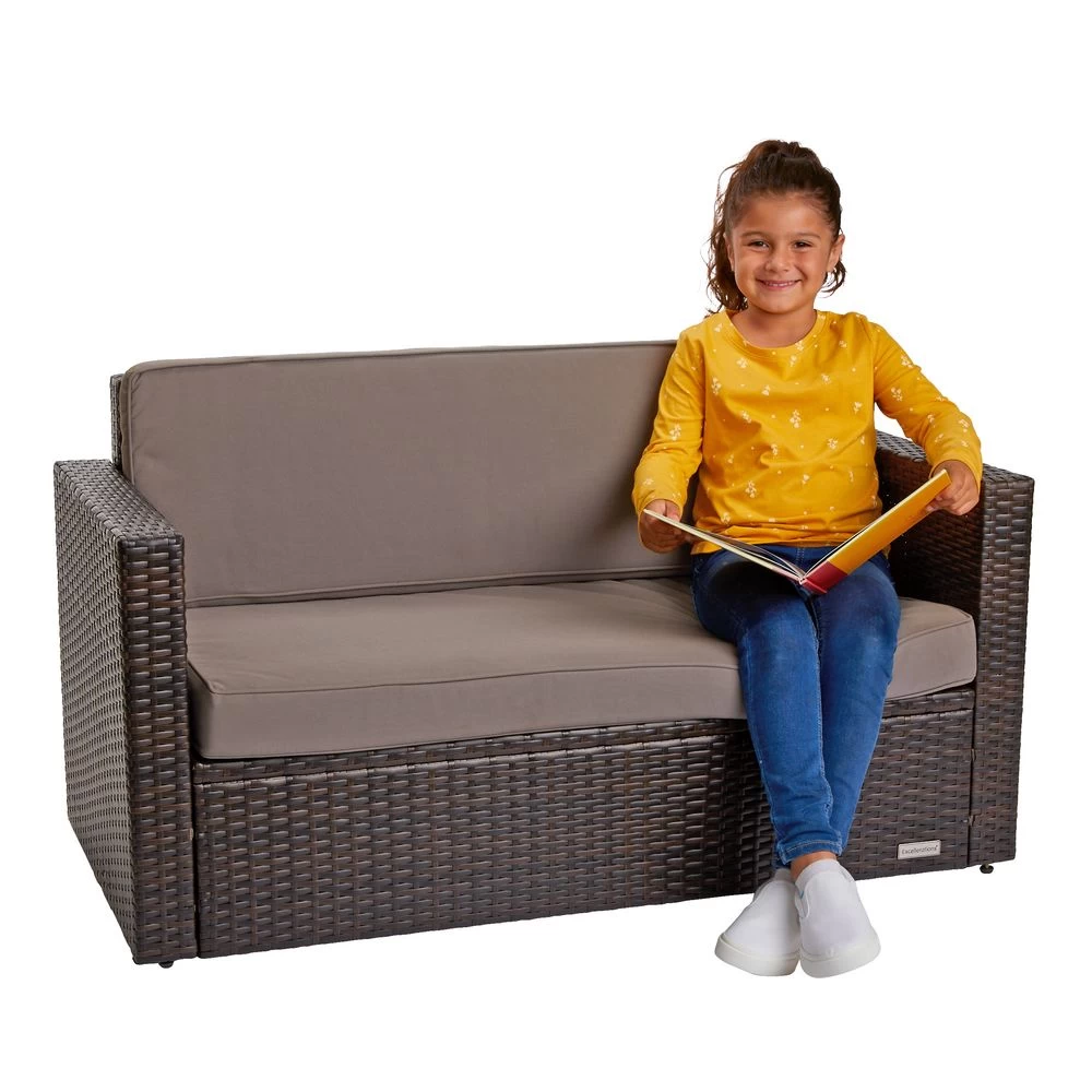 - CLASSIC AND COMFORTABLE: Thick spongy seat and back cushions make this sofa the perfect spot for kids to relax, read, or socialize. Water-resistant polyester covers are removable for easy cleaning.