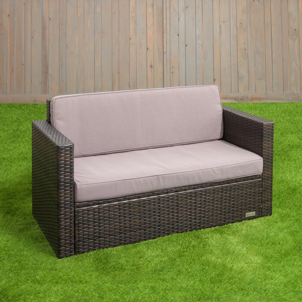 Classic yet contemporary design with clean lines and neutral palette complements any decor. Sofa has thick foam cushions with sun-resistant fabric cover. Recommended for 5 years and Up.