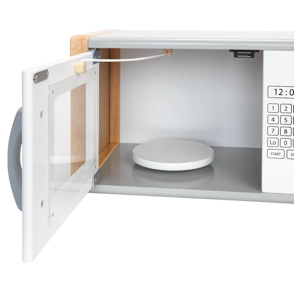 This modern microwave will provide years of imaginative play. Features include an oversized door handle that opens to a spacious oven. The clear viewing window makes it fun for kids to keep a close eye on their food. Kids can pretend to cook in the microwave just like grown-ups! Recommended for ages 36 months and up.