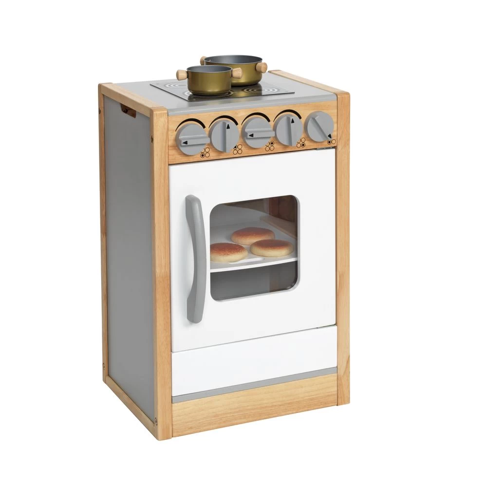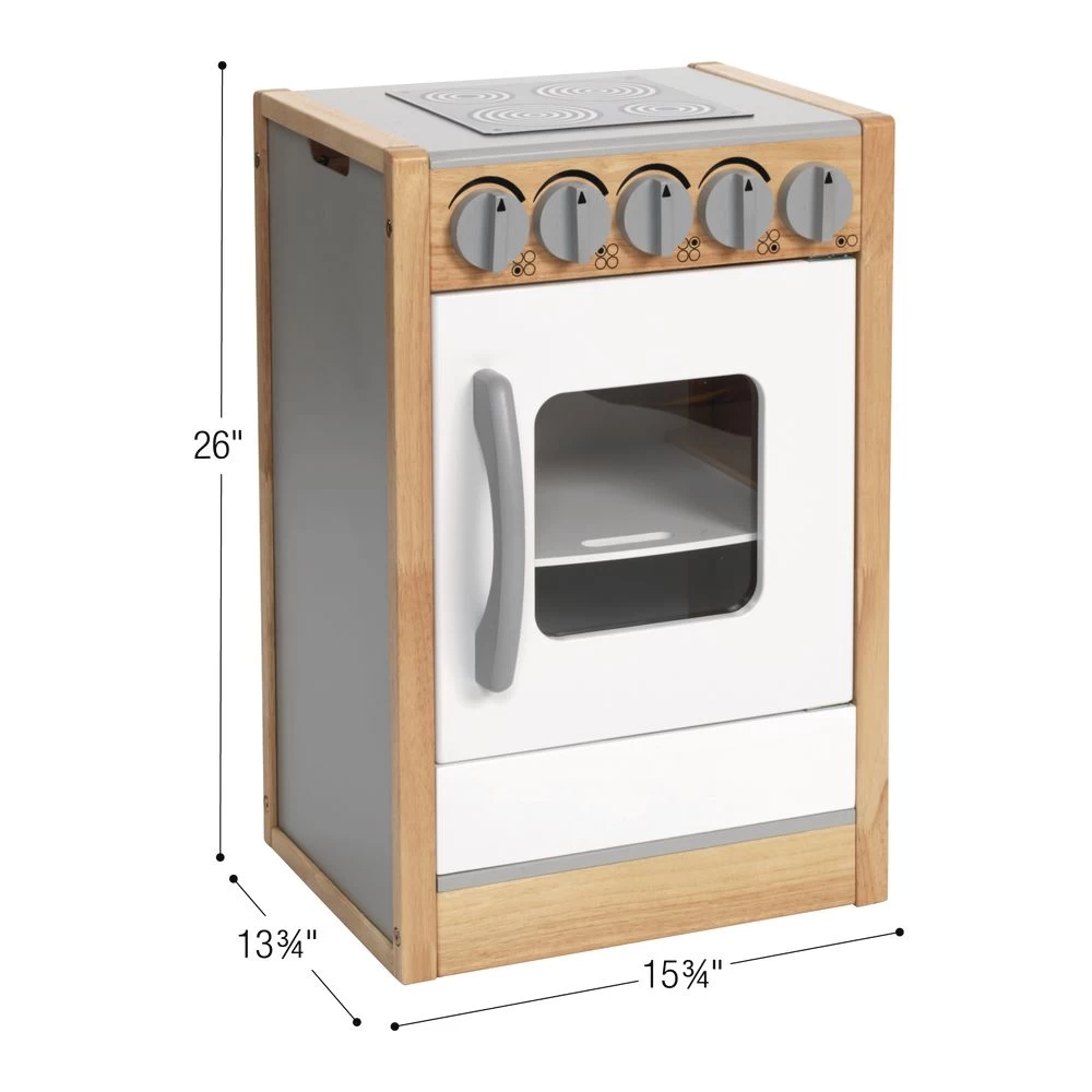 - STURDY DESIGN: This durable stove measures 15-3/4 x 13-3/4 x 26 inches and is crafted from sustainably harvested rubberwood. The toys are painted using only quality non-toxic finishes. The stove can be wiped clean with a damp cloth. The unit also features rounded corners for safety.
