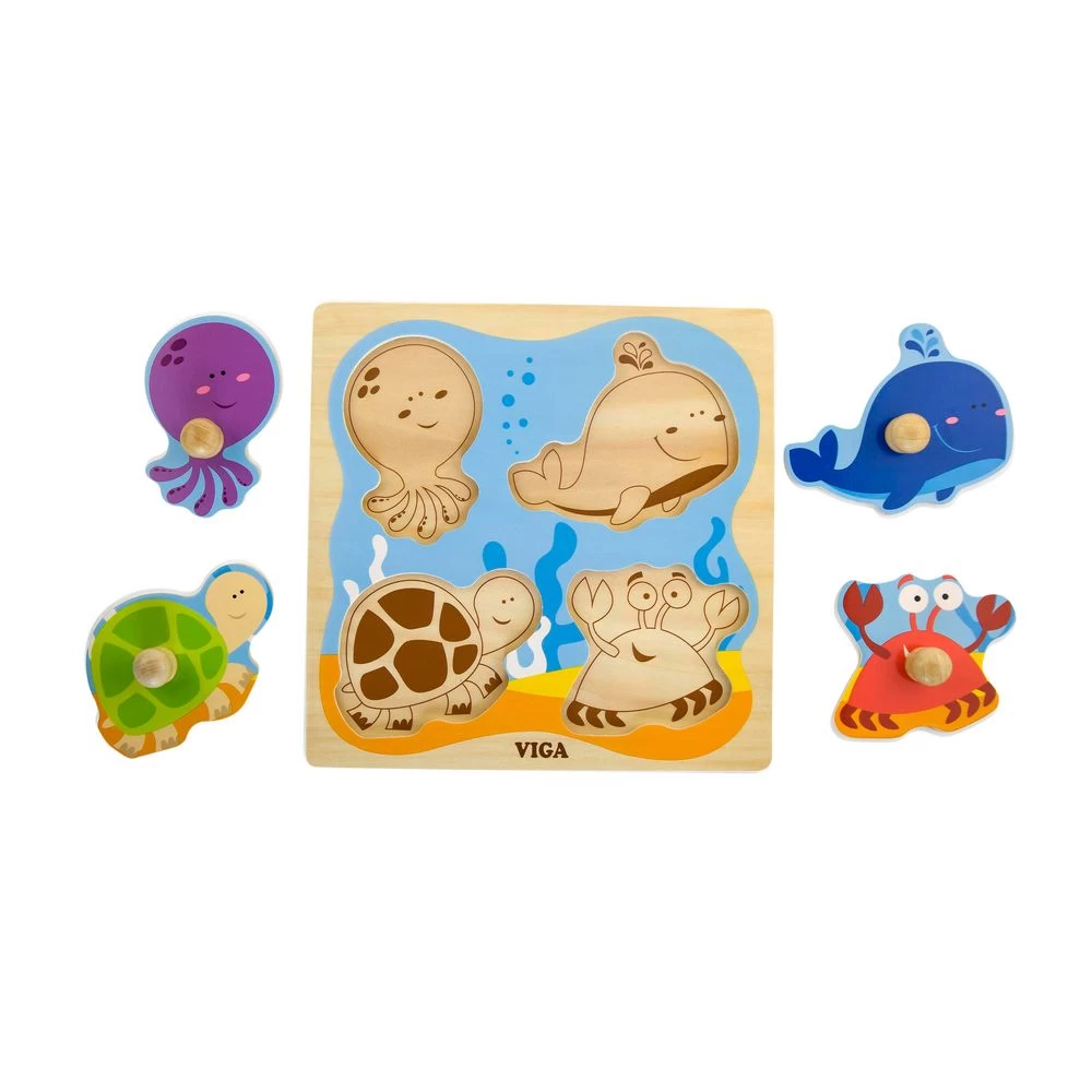 Using the related images underneath and the pieces on top, this simple flat puzzle can stimulate the logical thinking of little children at their early stage. Set of 4 includes Insects, sea, farm Animals and wild animal images.