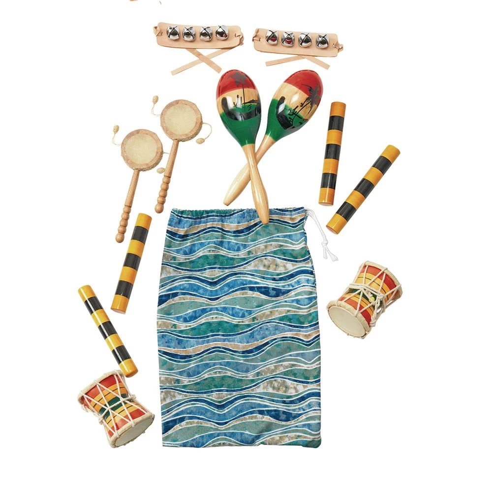 The global percussion travel kit contains an assortment of instruments with exciting, distinctive sounds. Combine drum and shaker sounds in your own style to create your own unique sound and rhythm patterns. Storage bag included.