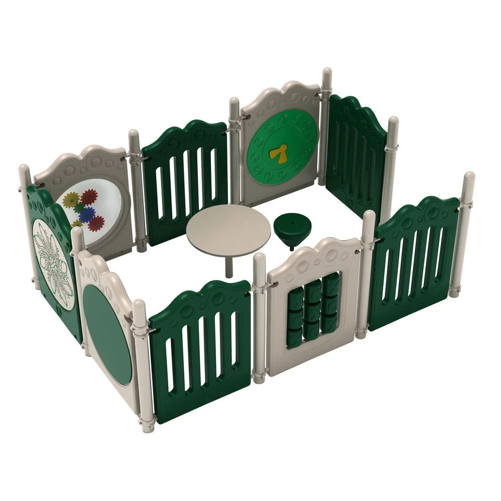 The Hartselle is a commercial-grade play structure perfect for playground designers wanting to include a quiet haven for the littlest youth visiting a park or schoolyard. This all-in-one open aired enclosure features a single entry, ideal for parents and teachers wanting to keep a close eye on their kids after letting them loose into the game filled playpen. Once inside, small ones can choose from a diverse collection of visually stimulating and interactive games. Each of these amusements is designed to cognitively engage growing minds and feature tactile elements built specifically for easy use by smaller hands. Youth can attempt to work their way through a Maze Panel by running a path through the labyrinth’s channels with their finger. Or kiddos might begin the valuable process of learning about time by rotating the large hands on the face of the Clock Panel. And children can always choose to make their own plans after a sit down on the two Pebble seats that rest around the circular Table. Meets national standards for ASTM F1487-17 and CPSC Guidelines #325. Fall height 24”. ADA Compliant