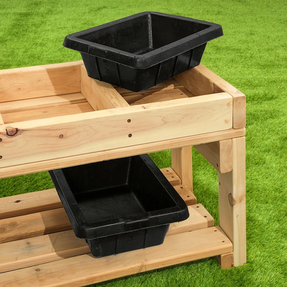 Complete with three strong, removable trays that can hold mud, water, natural materials and goop. Measure, mix, weigh and pour to conjure up natural concoctions and encourage mathematical role play. This quality resource is built to last and arrives fully assembled. Remove the trays to find three wooden container areas that can be filled with leaves, fir cones, twigs and all manner of resources for the children to self-select from.