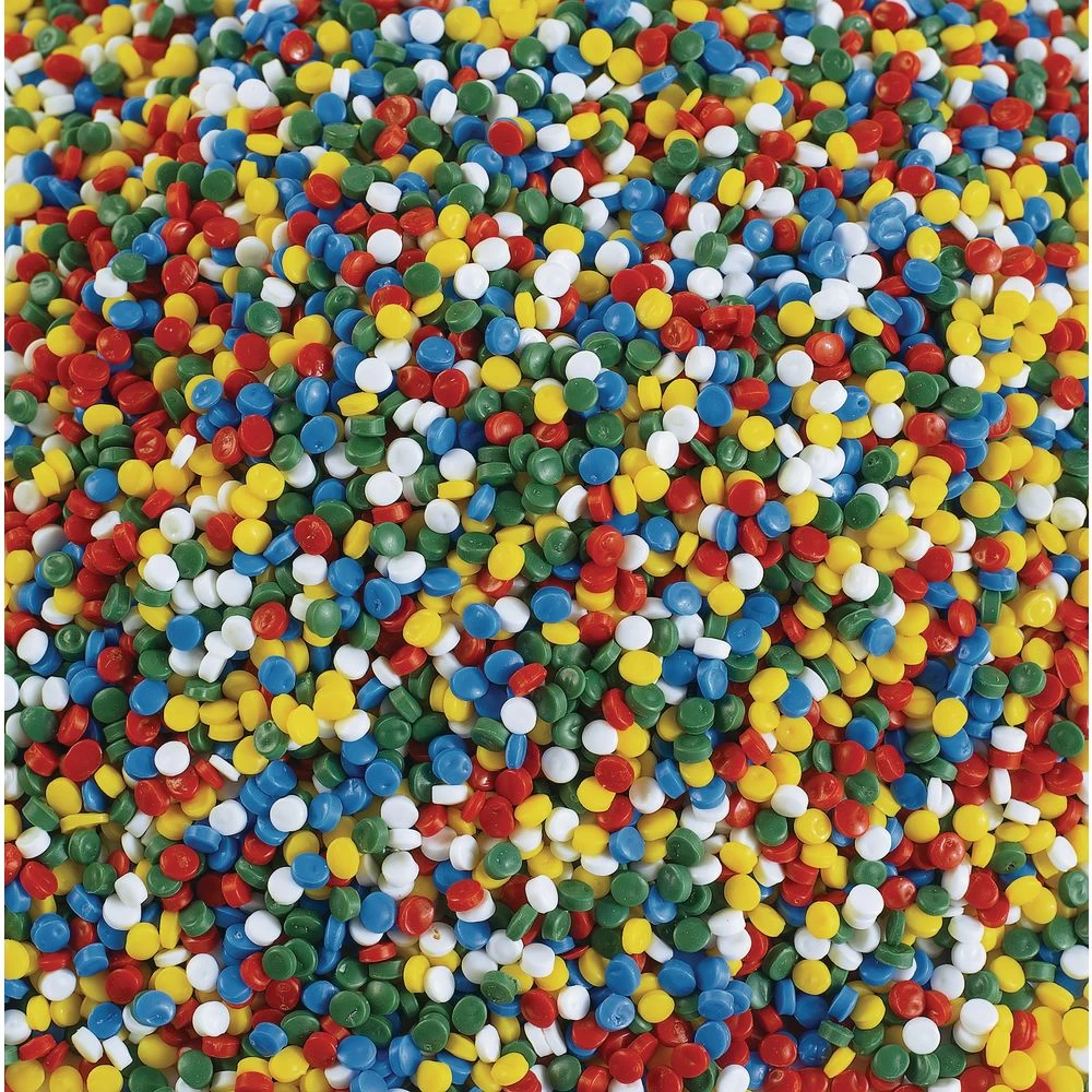 Colorful polypropylene plastic pellets are a great, safe alternative to sand, oatmeal and rice!