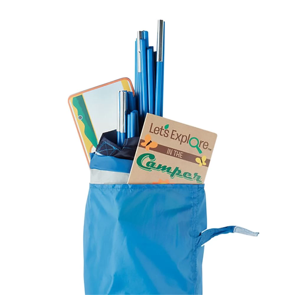 Explore the outdoor experience of hitting the road for a pretend camping adventure with the easy-to-assemble Melissa & Doug Let’s Explore™ Camper Tent Play Set! Take imaginations for a spin in the 47” x 31” x 39” RV-shaped tent with door and roof flaps, screen windows, an inside storage pocket, and lots of realistic illustrated details. Map out road trips on the reusable activity booklet and personalize the removable license plate. The play tent folds up and fits in a handy storage bag for easy cleanup! Let’s Explore™ encourages kids three and older to connect with the natural world through imaginative play. Discover the joy of outdoor adventures that instill curiosity and confidence while inspiring kids to say, “Let’s Explore™”!