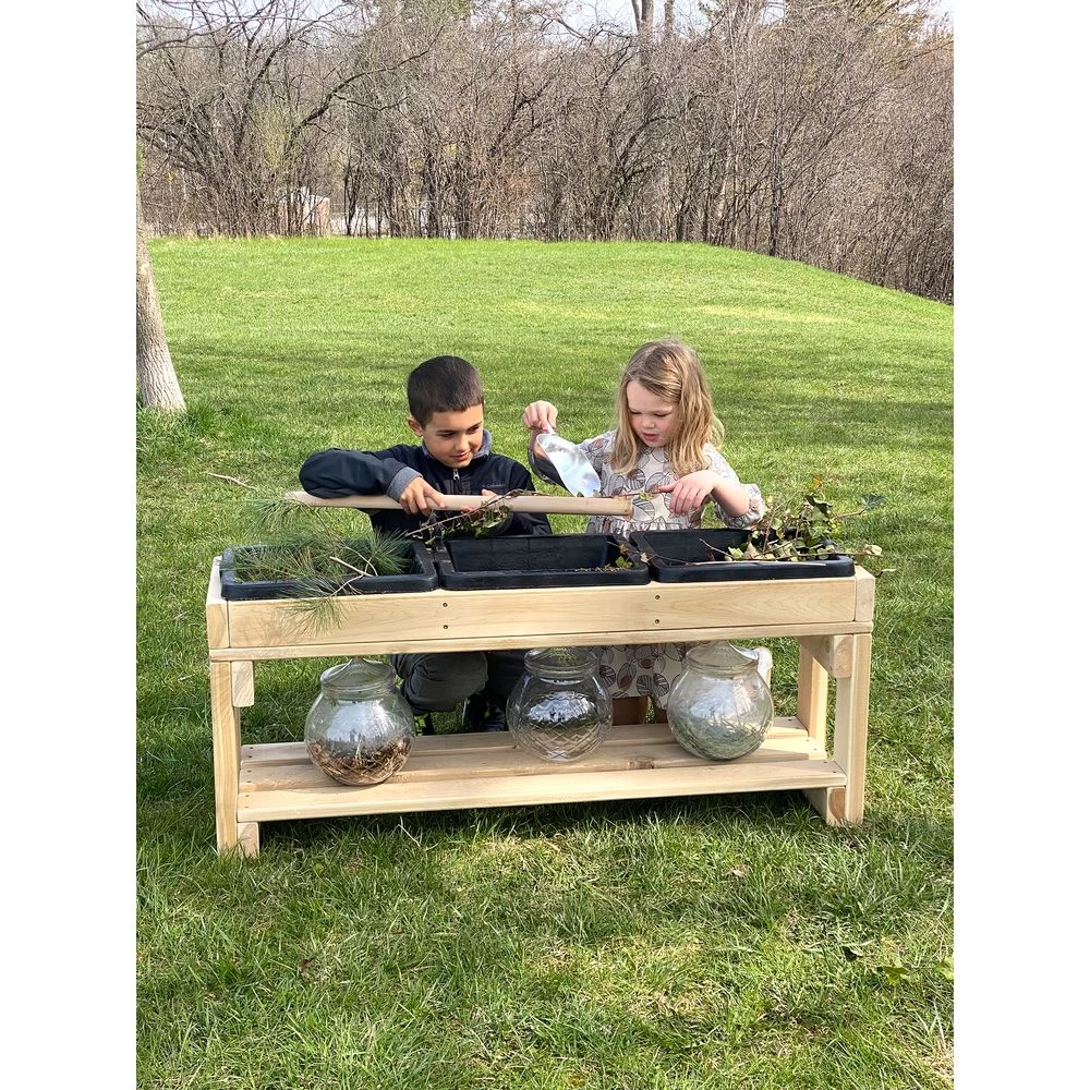 Complete with three strong, removable trays that can hold mud, water, natural materials and goop.