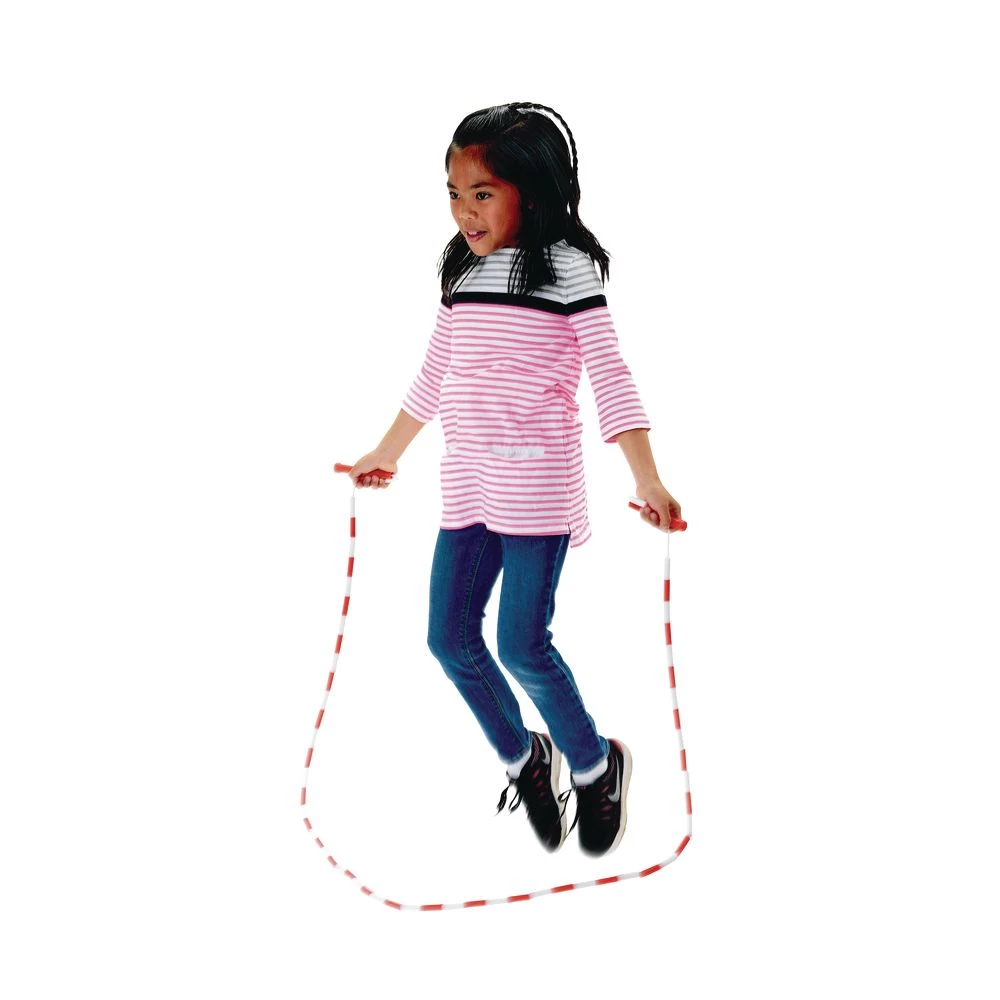 Our red and white segmented jump rope is 7-1/2′ long and is nearly impossible to tangle. A playground favorite!