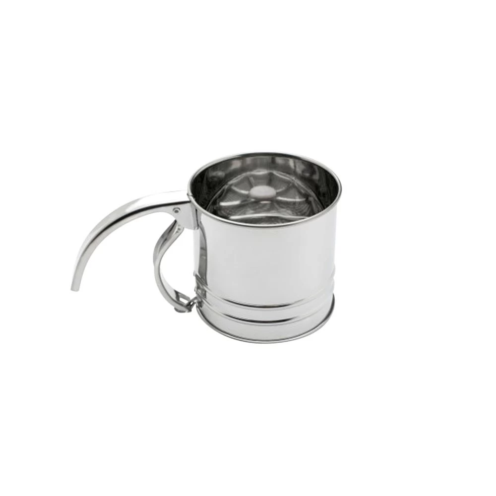 Make mixing flour into other ingredients easier by sifting with this 1-Cup Flour Sifter! This classically styled, crank-handled sifter has been a favorite of bakers for decades. It quickly breaks up any lumps in the flour and aerates it at the same time to give you lighter, more consistent, clump-free results. Made of durable stainless steel, the sifter features a fine mesh screen.