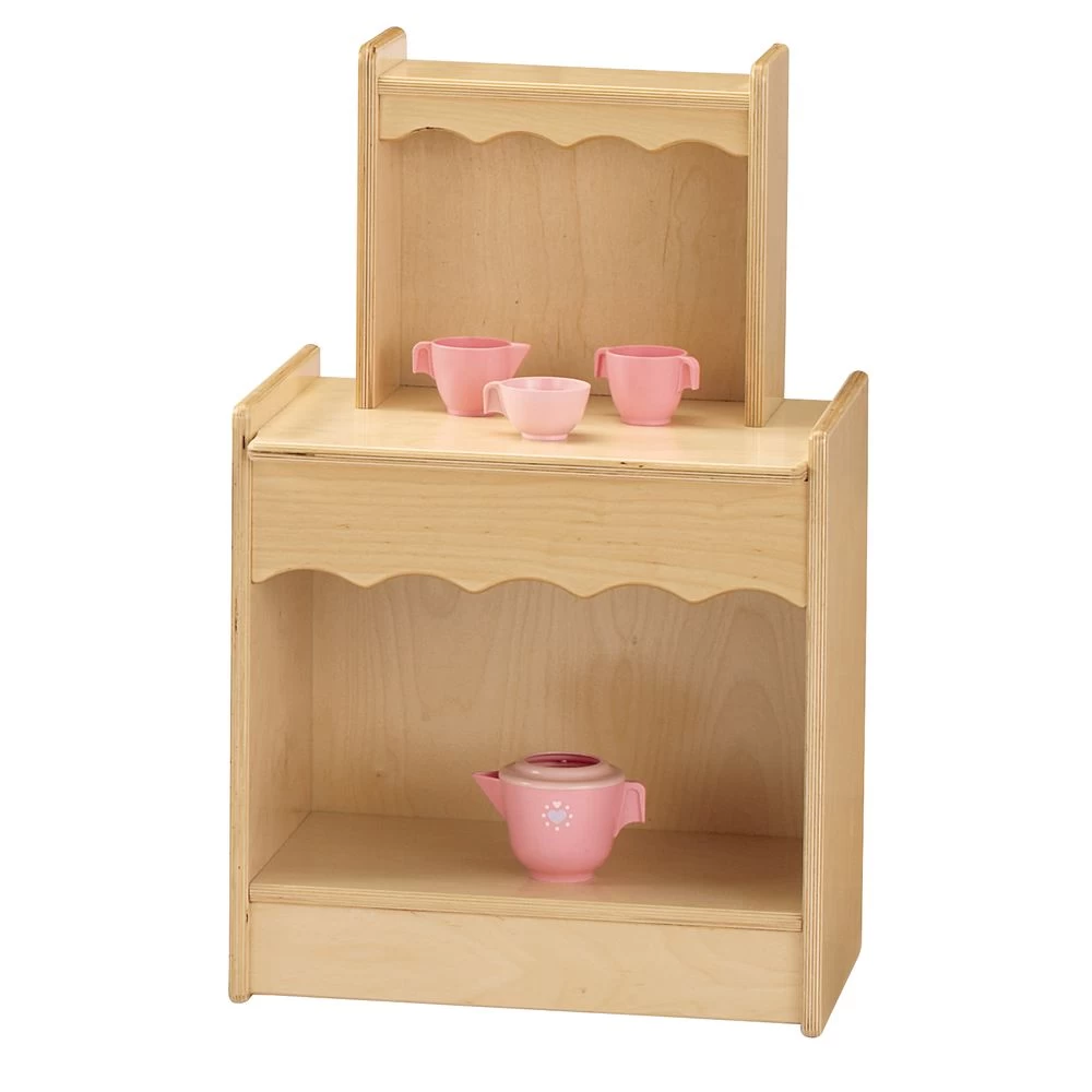A snazzy new kitchen cupboard. design with features that will delight toddlers. They’ll love storing pans and in this special spot. Natural wood with finish that resists stains, won’t yellow and cleans easily. Dramatic play will come alive. Lifetime warranty. 13 1/2″W x 18 1/2″D x 21 1/2″H