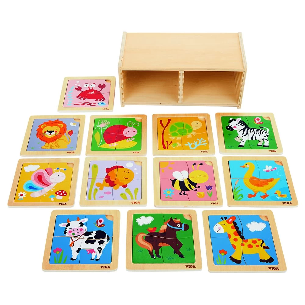 A Space-saving wooden storage is specifically designed for the 4-pcs handy flat puzzles, which can drag you out of the mess and make everything neat and tidy.